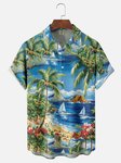 Tall Size Moisture-wicking Palm Tree Chest Pocket Hawaiian Shirt
